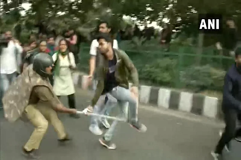 "We were protesting peacefully but suddenly the police lathi-charged us. With the result, all of us got dispersed in different directions and taking advantage of that situation the police has now gheraoed us," Manya Dixit, a JNU student told Outlook.