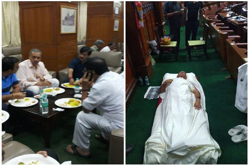 The legislators had 'masala dosa' and curd rice for supper in the assembly lounges. Many went to sleep early after a long day in the House due to heated exchanges and acrimonious scenes in the House, as the ruling combine was reportedly delayed in going through the crucial vote.