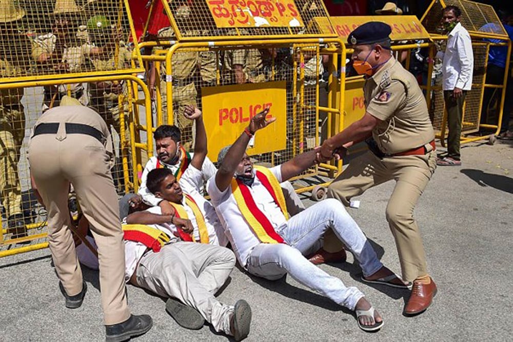 Activists of several Kannada organisations who gathered near the city's Town Hall for staging demonstrations were detained and taken away by the police. Protests have also been reported in Chamarajanagara, Bengaluru Rural, Gadag, Koppa, Hassan, Ramanagara, Chitradurga, Davangere, Bagalkote, Chikkamagaluru and Mandya districts.