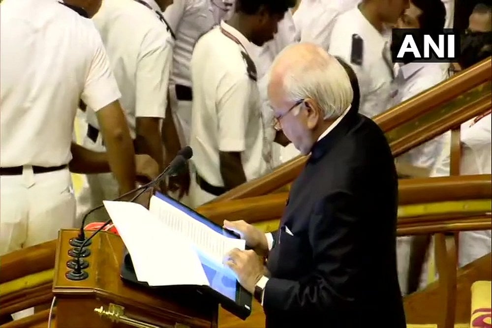 The incident took place when Chief Minister Pinarayi Vijayan and Speaker P Sreeramakrishnan ushered Khan to the assembly hall for presenting the policy address.