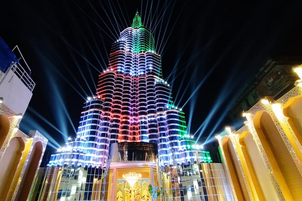 The laser show of Durga Puja pandal modelled on the pattern of world’s tallest building Burj Khalifa in Kolkata, which drew crowds towards it has been suspended following fears of Covid-19 spread.