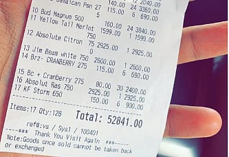 The incident came to light after the unidentified customer posted a receipt on social media, showing he bought liquor worth Rs 52,841 from Vanilla Spirit Zone in Bengaluru's south-eastern suburb on Monday afternoon.