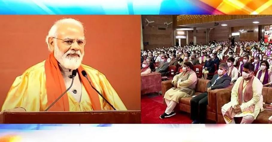 The prime minister launched blockchain-based digital degrees at the ceremony, also attended by Uttar Pradesh Governor Anandiben Patel and Chief Minister Yogi Adityanath.