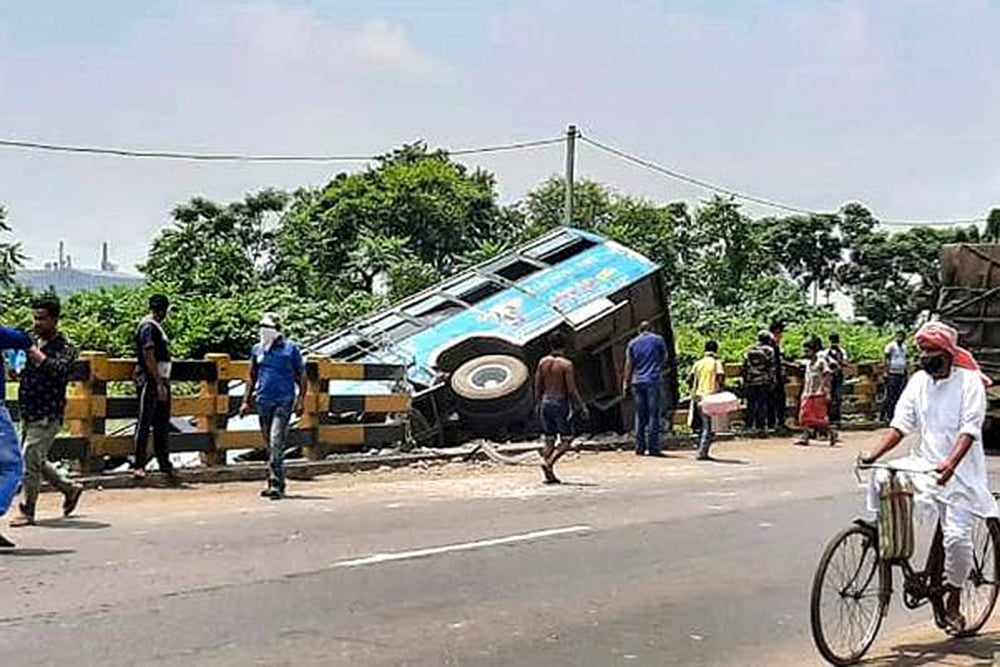 A bus, which was crossing a newly constructed over the Mithi river in Madhya Pradesh’s Sheopur district, skidded off the overflowing bridge amid heavy rains wreaking havoc in the region, officials said on Sunday.