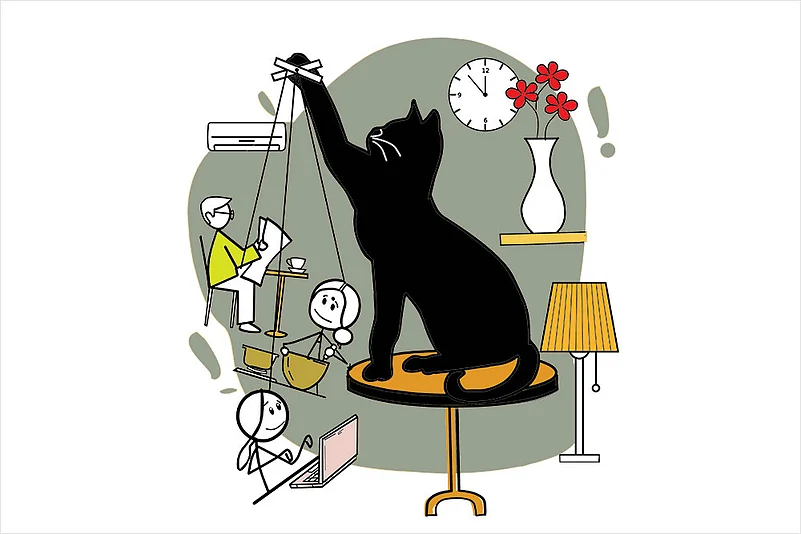 It became a game between them and the cat. It would come in when all three were there. They would together call for the cat–Meowdi. It would look at all three, fake a leap in front of everyone and would suddenly land on someone’s lap. The three would make noise in excitement. The cat couldn’t stand the noise, it would jump down. Then they decided that they wouldn’t make noise if the cat went on somebody’s lap. The house was not silent any more. There was no fatigue on any face. Conversations began with “Meowdi”. The daughter spent more time outside her room.