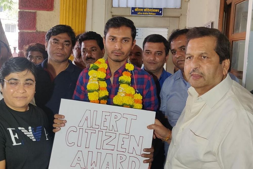 The BJP MLA conferred "Alert Citizenship Award" on cab driver Rohit Gaur at the Santacruz police station.