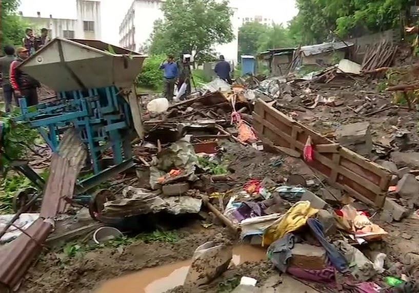 8:20 AM: At least 12 people were killed and six others injured after a compound wall collapsed in Malad area here on Tuesday due to heavy rains, NDRF officials said.