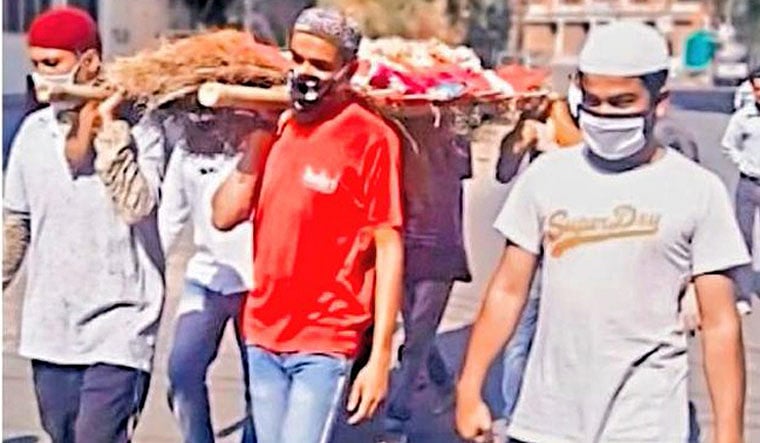 Due to the lockdown, the deceased's relatives could not reach the place for her funeral and no vehicle was available to carry the body to the cremation ground.