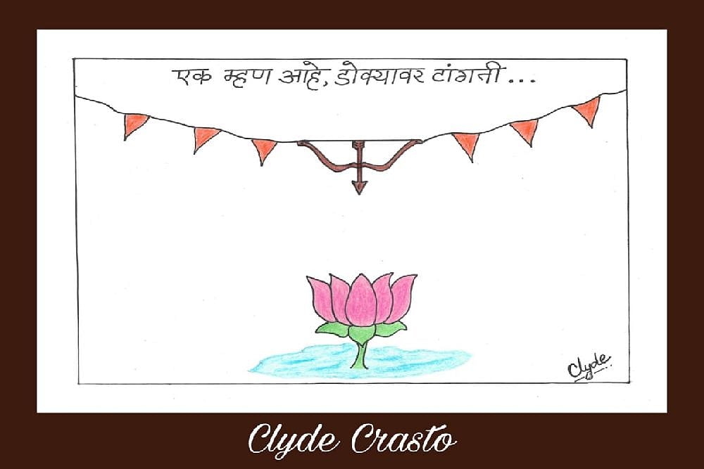 In the cartoon, released by NCP spokesperson Clyde Crasto on Tuesday, the Shiv Sena's poll symbol 'bow and arrow' is seen hanging over the BJP's symbol 'lotus'.