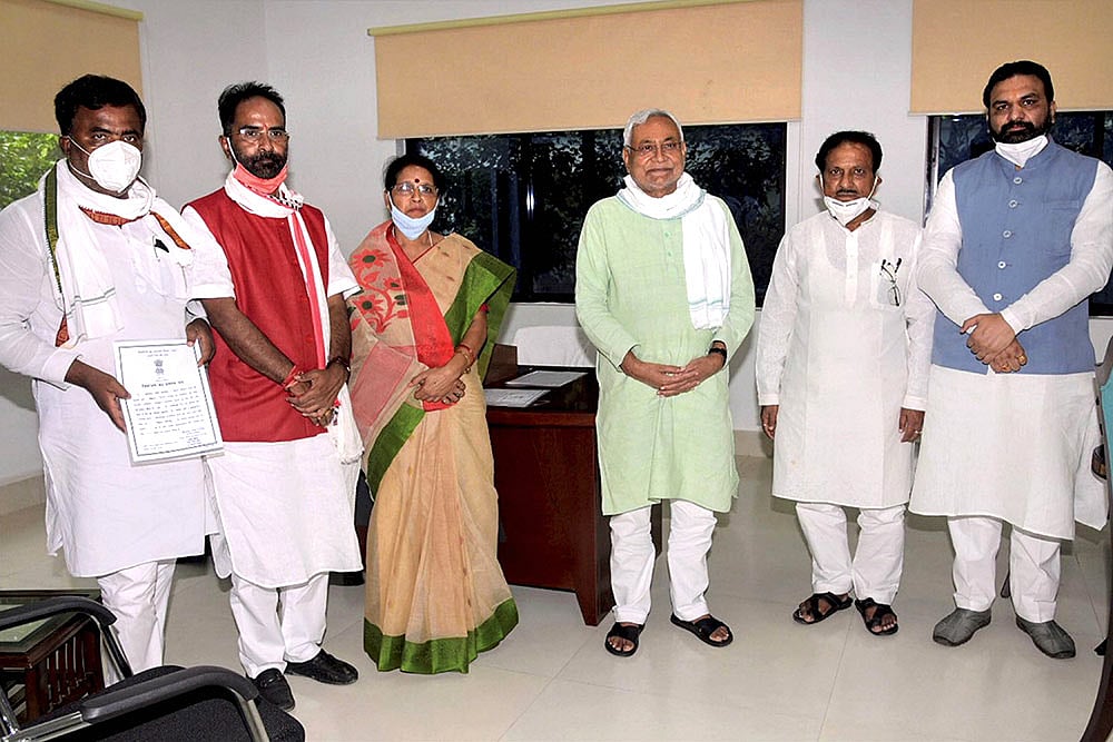 A video of the oath ceremony on July 1 shows the CM seating next to Awadhesh Narayan Singh, a BJP leader. Speaker of the Legislative Assembly Vijay Kumar Chaudhary was on the other side of the infected leader while Sushil Modi was seated next to the CM.