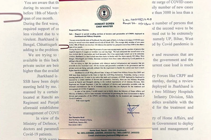 In another development, Jharkhand Chief Minister Hemant Soren sought help from the doctors assigned to the paramilitary forces deployed in the state to help fight the pandemic. In a letter to the prime minister, he urged him to direct, “The Ministry of Home Affairs and Ministry of Defence (GOI) to issue necessary instructions for permitting the state government to deploy doctors and paramedics of the CPMFs and military hospitals for the treatment and management of Covid-19 patients.”