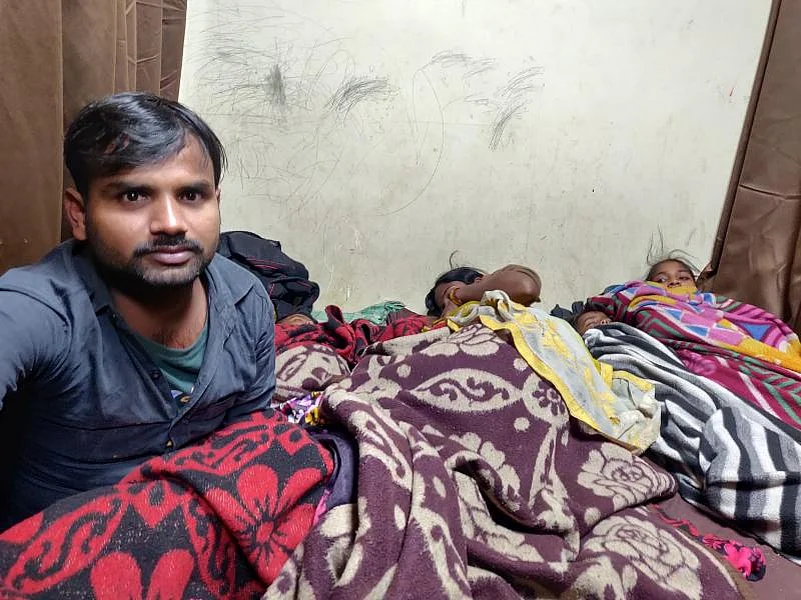 (While 'permanent' residents find 'khatiyas', the transient manage with just blankets | Photograph by Tribhuvan Tiwari)