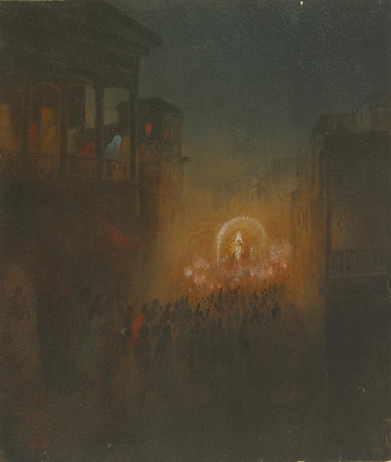 Sircar said that there are many paintings, including one by Gaganendranath Tagore and several others by the Company School of painters, depicting the bisorjon processions with people crowding on both sides of the streets.