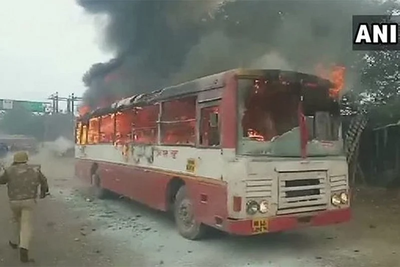 The protesters torched a state-run bus at Parivartan Chowk, close to the district magistrate's office, and set on fire a police post in Satkhanda area.