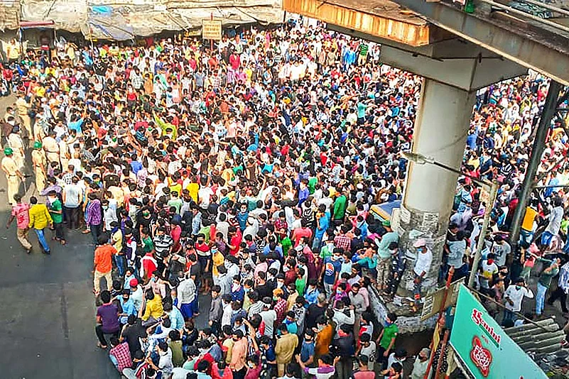 Nearly 1,000 migrant workers gathered near the Bandra railway station here on April 14, demanding transport arrangements for them to go back to their native places.