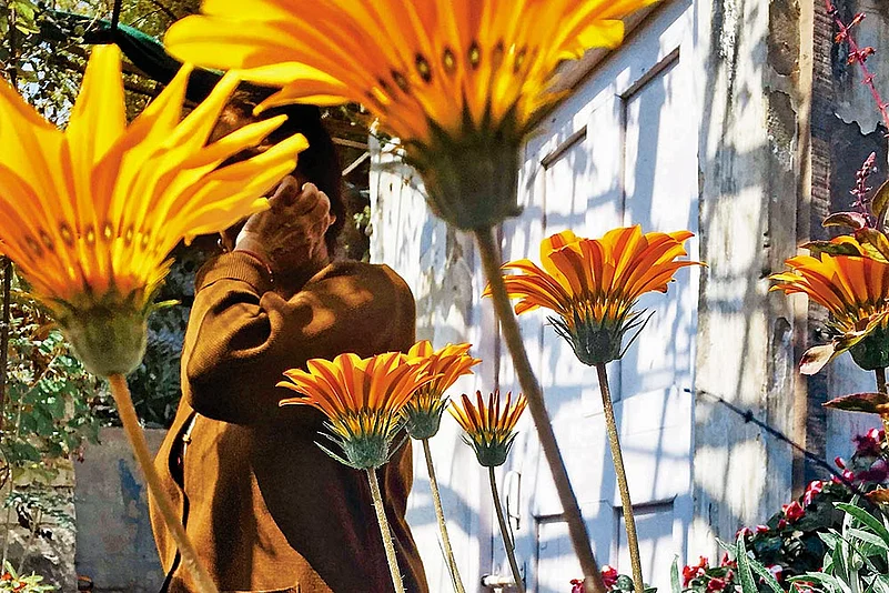 I slowly resumed my walks in the city. For the first time in several years, my camera and I felt disconnected from it. Faces weren’t visible, eyes were cautious; there was a coldness in July and a lack of music in the rains that followed. Every other shop was selling face masks and hand sanitisers. These little bottles of blue and yellow were turning this city and us colourless. I learnt of colleagues who left for their hometowns because they could not support their artistic practice in Delhi. Prior to the pandemic, I was having a dream run professionally—I was travelling across the world, exhibiting at biennales and museums. But I also felt saturated in my photographic practice. I feared becoming redundant and a conformist. By the end of the first wave, life had hit rock bottom. But this is where being an artist helps. You can take all your pain, anger and regret and transform them into something beautiful. I knew that was my chance to reinvent myself. I started writing my first short film; I slowly started dreaming again.