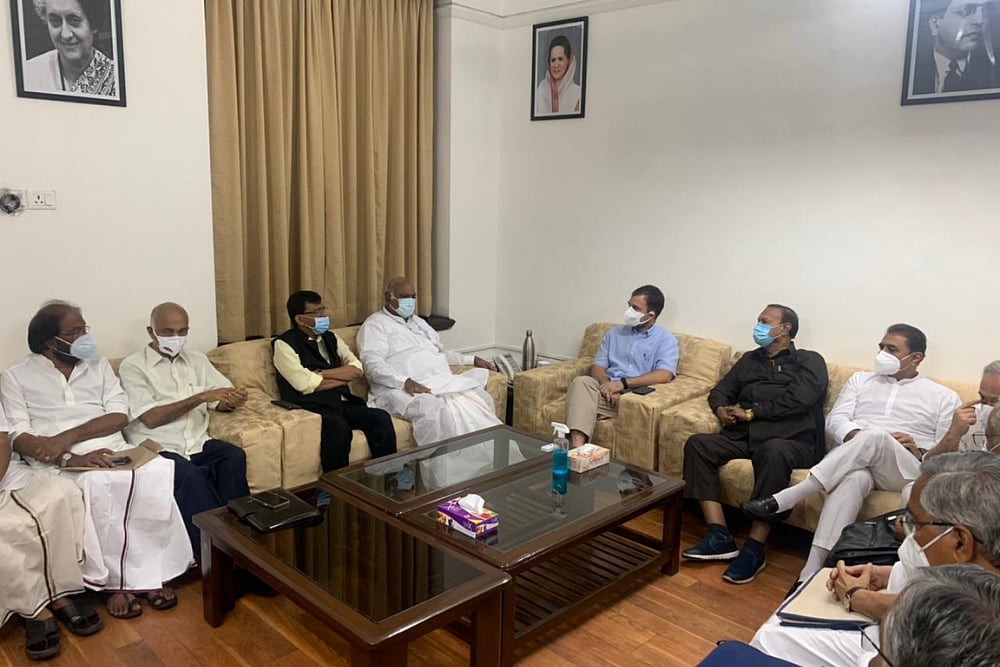 The meeting was chaired by Mallikarjun Kharge and was attended by opposition leaders from both Lok Sabha and Rajya Sabha including Congress' Rahul Gandhi.