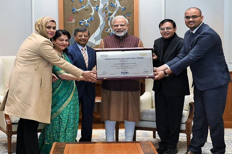 Prime Minister Narendra Modi on Monday was honoured with the first-ever Philip Kotler Presidential award in Delhi. According to the award citation, Modi was selected for his "outstanding leadership for the nation".