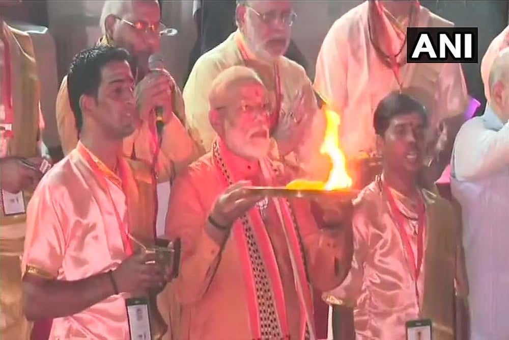 The roadshow ended at the Dashashwamedh Ghat where Modi took part in the Ganga aarti along with BJP president Amit Shah.