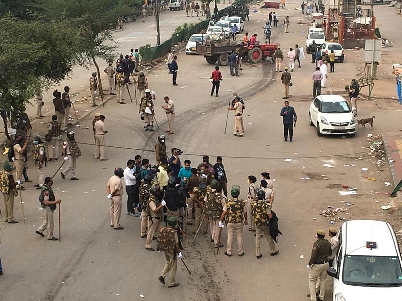 Police found a banner, rugs, burnt bamboo and a few broken bottles. Some bottles were also found in a lane near the protest site, said Deputy Commissioner of Police (Southeast) RP Meena.