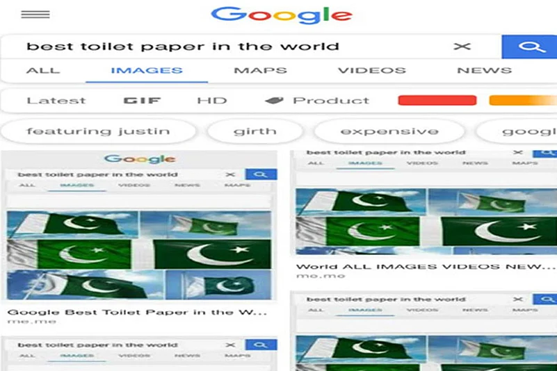Google search has been showing the Pakistani flag to be the "best toilet paper in the world", the "best China-made toilet paper" or just "toilet paper".