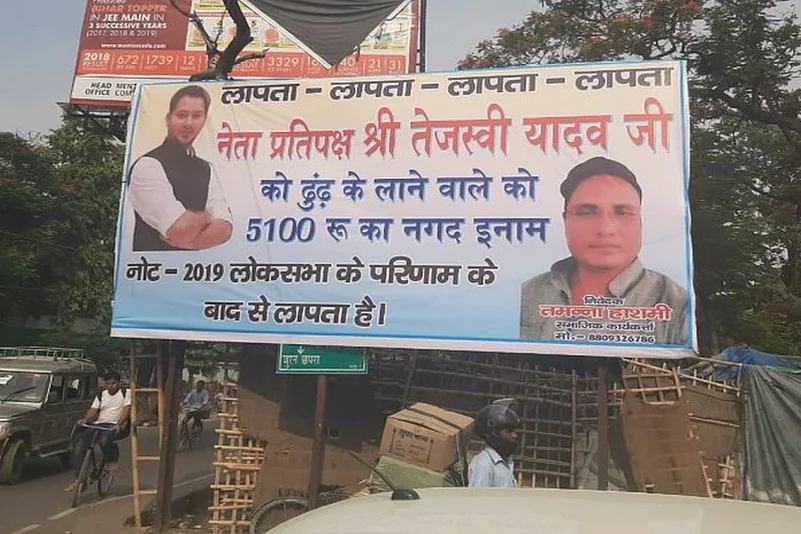 Poster Declaring Reward For Tracing 'Missing' RJD Leader Tejashwi Yadav Appears In Bihar's Muzaffarpur