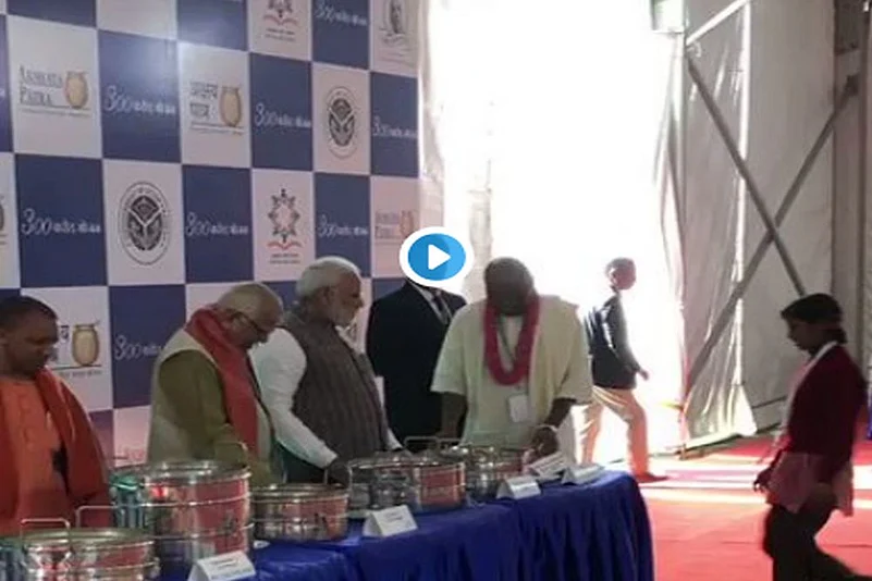Modi also unveiled a ceremonial plaque to mark the serving of "third billionth meal" by Akshaya Patra Foundation.