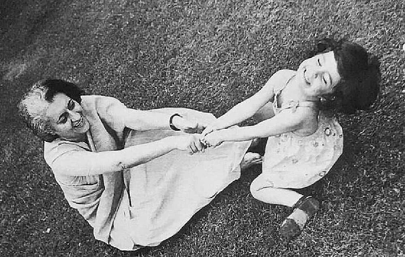 Alongside the poem, Priyanka posted a black and white of her younger self playing with Indira Gandhi.