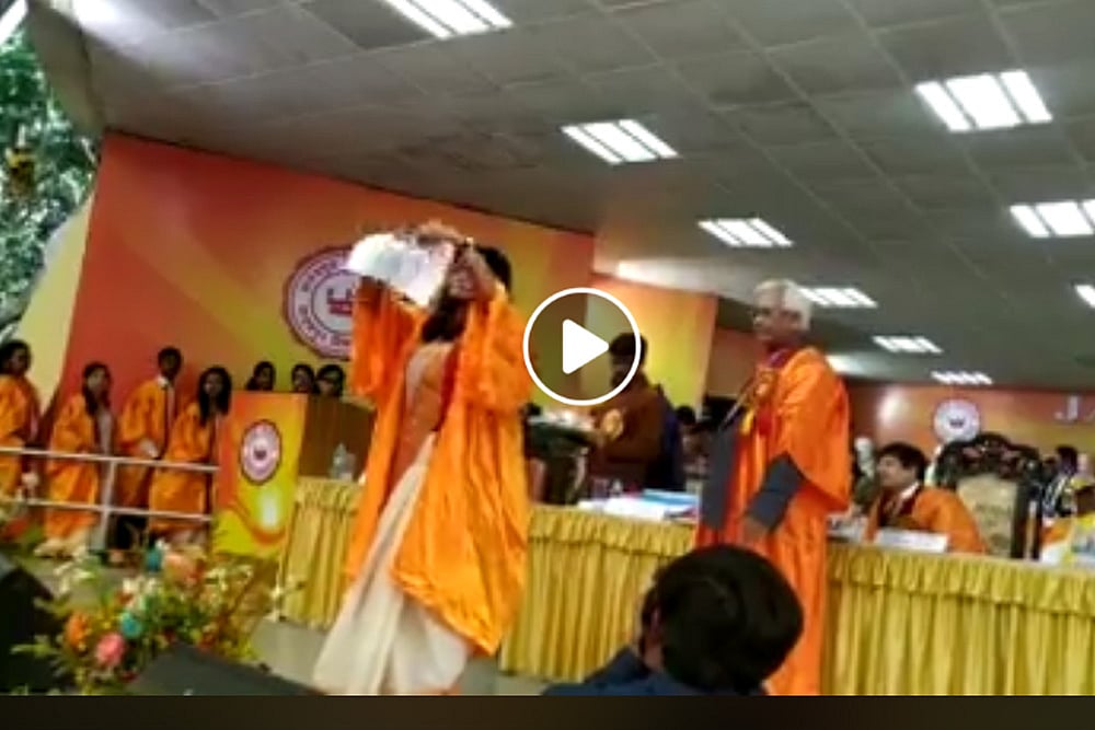 Chowdhury, a student of international relations, shook hands with Ghosh and requested him for a moment. She kept her medal and certificate on the table, took a couple of steps forward, and tore apart the Citizenship Amendment Act (CAA) document.