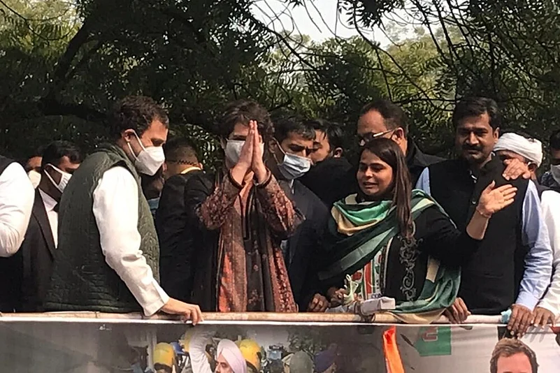 Rahul Gandhi was accompanied by AICC general secretary Priyanka Gandhi Vadra and other leaders of the Delhi Congress at the protest outside the Delhi LG's residence here as part of the countrywide agitation.