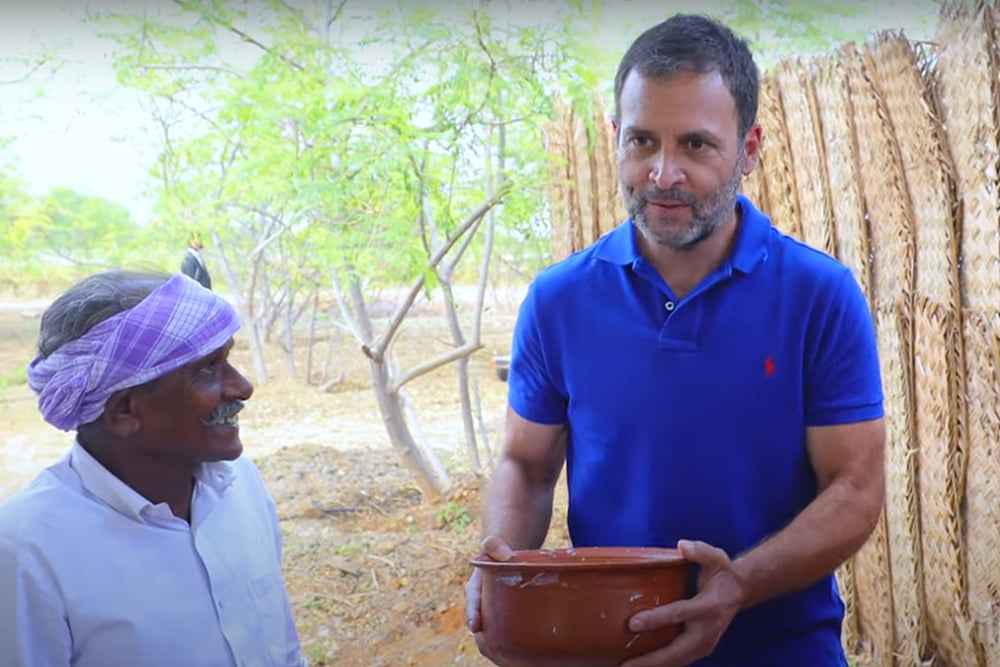 During the meal the Congress leader lauded the makers, saying the food was "romba nalla irukku" (it is very nice, in Tamil) even as he is seen enquiring what other delicacies they can cook.