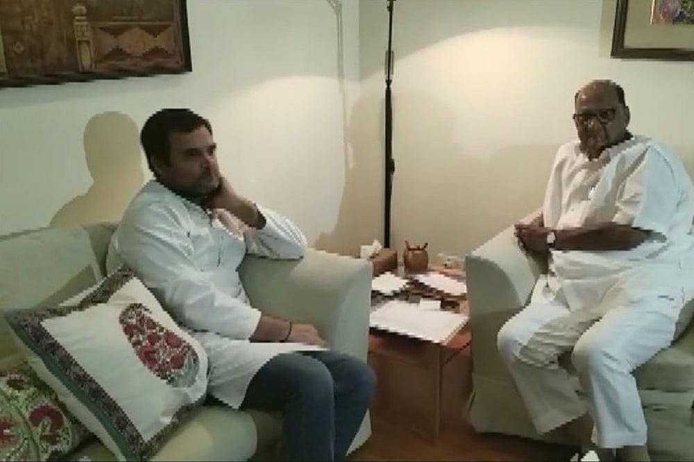 Amid continued speculation over his resignations as Congress party president, Rahul Gandhi on Thursday met Nationalist Congress Party chief Sharad Pawar at the latter's Delhi residence and is learnt to have discussed the current political situation with him.