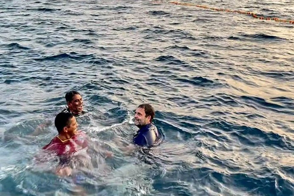 Congress leader Rahul Gandhi on Wednesday took a dip into the sea with fishermen in Kerala’s Kollam just to experience their lives. He jumped into the water when he saw some fishermen doing that after casting their net to catch fish. He spent around 10 minutes swimming before returning to the shore in this southern coastal region, party sources said.