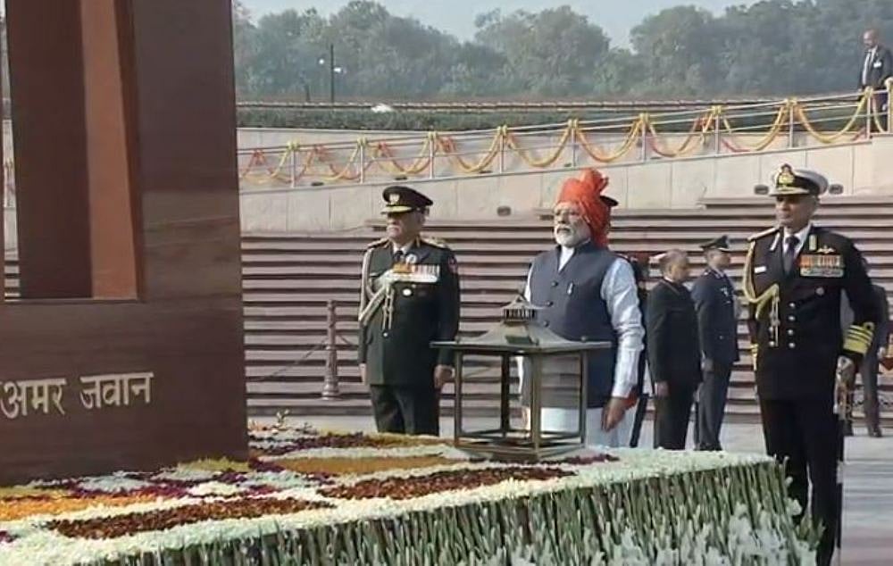 9:35 AM: PM Modi paid tribute to martyrs at the national war memorial instead of Amar Jawan Jyoti.