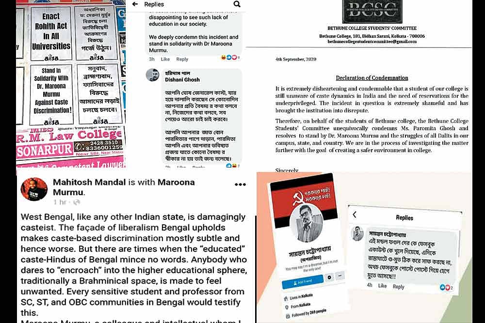 Casteist slurs, heated debates and arguments followed two back-to-back events in West Bengal, revealing a caste-based fault-line that has mostly remained invisible in the state. First, in early September, Jadavpur University (JU) professor Maroona Murmu, who belongs to a scheduled tribe (ST), was trolled online after a Bethune College student insulted and accused her of taking advantage of reservation in education and jobs. Murmu found support from academia, which criticised the casteist remarks. But many social media users stood by the student, Paromita Ghosh, and abused people from ST and scheduled caste (SC) communities for the reservation constitutionally guaranteed to them.