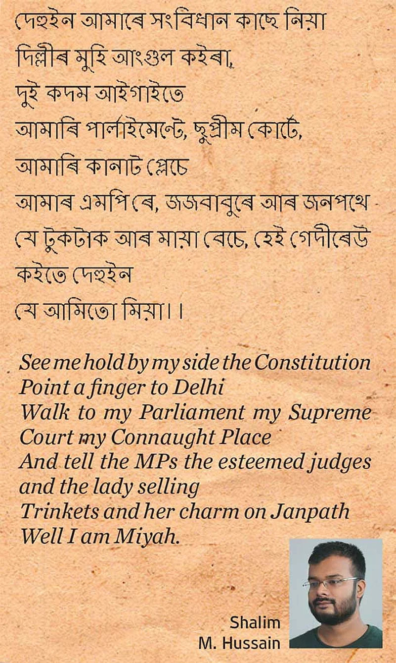 Kazi Neel alias Kazi Sharowar Hussain, a student of cultural studies who is also named in the FIR, says his poetry is merely a reflection of the times. “The appeal of poetry is universal. Just because it’s written in a specific dialect, it doesn’t necessarily mean that it’s saying about that community particularly. My poem reflects the thoughts of the people who have suffered in the society. I have written about the negligence I have faced and the harassment my father has faced in the name of D-voter,” says Kazi. D-voters are a category of suspected foreigners whose names are not included in the NRC. Parvin Sultana, an assistant professor at Pramathesh Barua College in Dhubri, says those who dismiss poems in the Miya dialect also tends to wish away the fact that identity is multi-layered. “A ‘miya’ can be a Miya and an Oxomiya at the same time,” she adds.