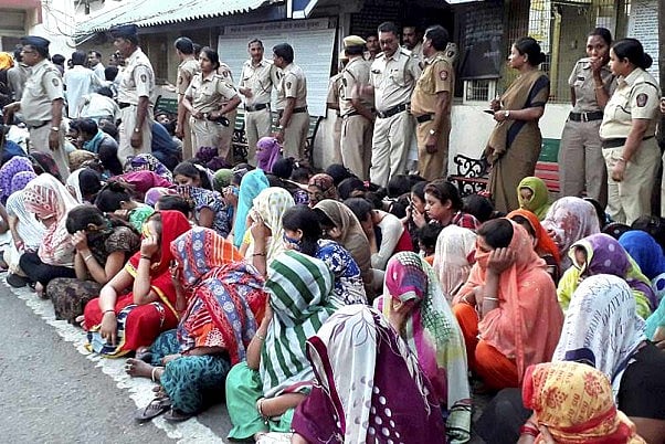 A group of more than 100 sex workers led by NCP leader Jwala Dhote raised slogans against the police this morning. Some of the women removed barricades prohibiting entry to the 12 lanes in the area.