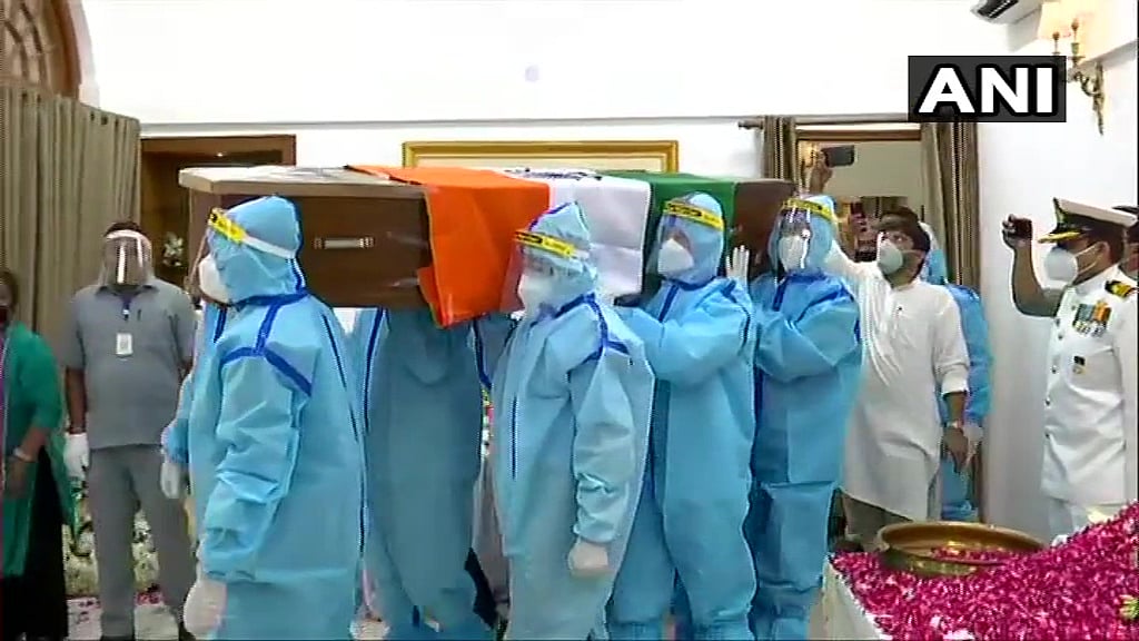 As per guidelines issued for last rites of former President Pranab Mukherjee, official dignitaries paid homage from 9:15 am to 10:15 am, other dignitaries visited after 10:15 am to 11 am and an hour's time was kept for general public from 11 am to 12 noon.
