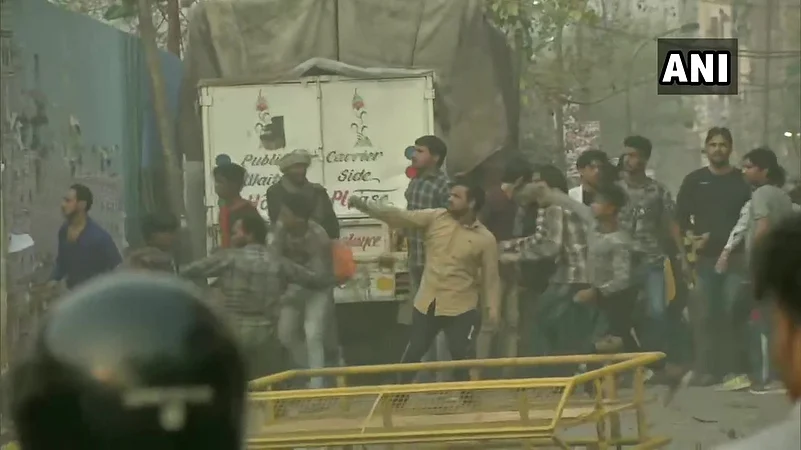 Clashes broke out between two groups of people on Sunday evening near Jaffrabad in northeast Delhi where a large number of people had gathered to protest against the Citizenship Amendment Act.