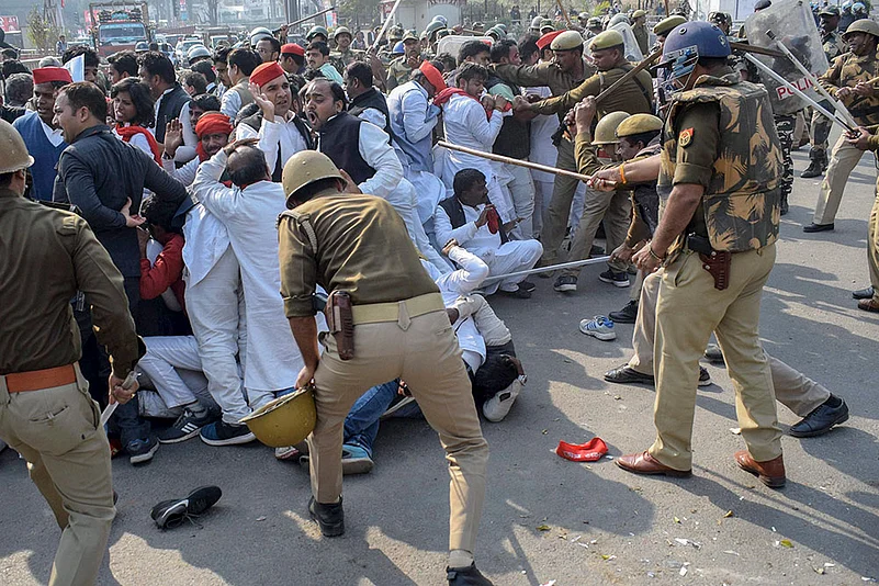 After the news of his detention, protests broke out in Allahabad, Jaunpur, Jhansi, Kannauj, Balrampur, Jalaun and Gorakhpur, among other places, where SP supporters smashed windscreens of vehicles and clashed with the police.