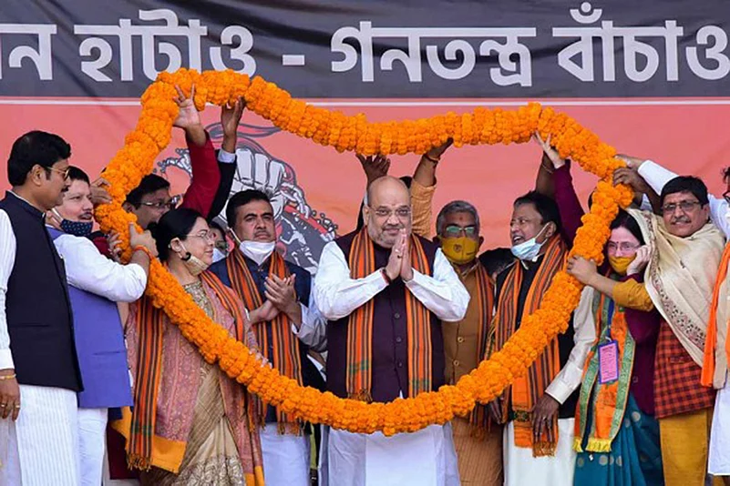 Shah arrived in Bengal on Saturday when he addressed a public rally in West Midnapore district. Shah has a set of events scheduled on Sunday in Bolpur and Santiniketan.