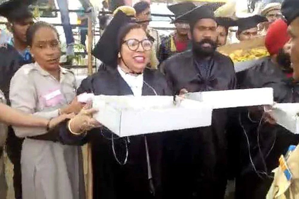 The students wearing the robes were selling pakodas named after Prime Minister Narendra Modi and their degrees — Engineer, BA and LLB, near the venue he was to address a rally in support of BJP candidate Kirron Kher.