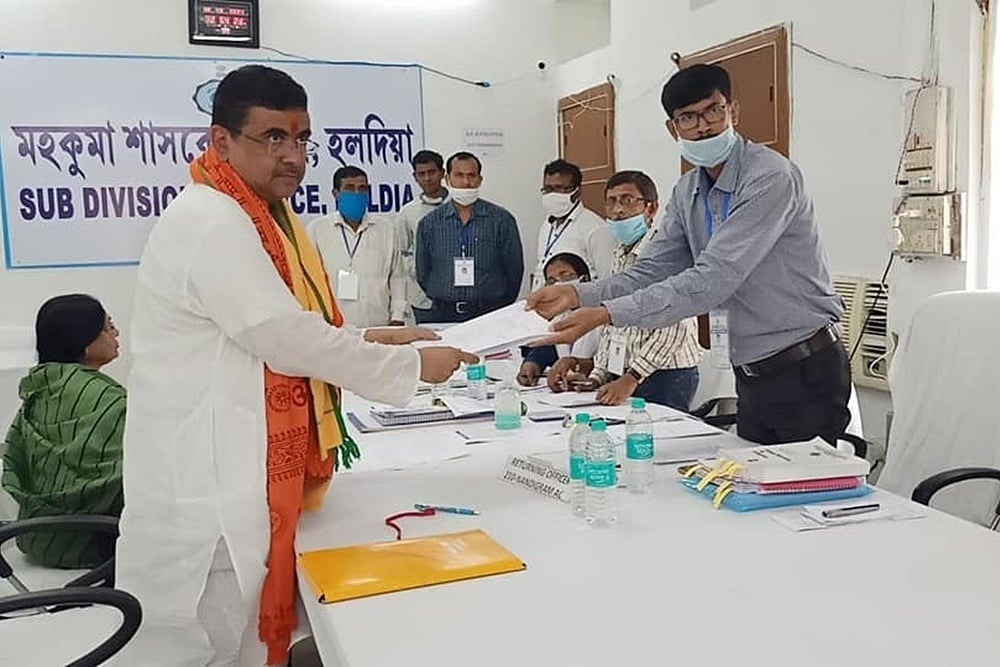 Adhikari filed his papers at the sub-divisional office in Haldia after leading a-km-long roadshow.