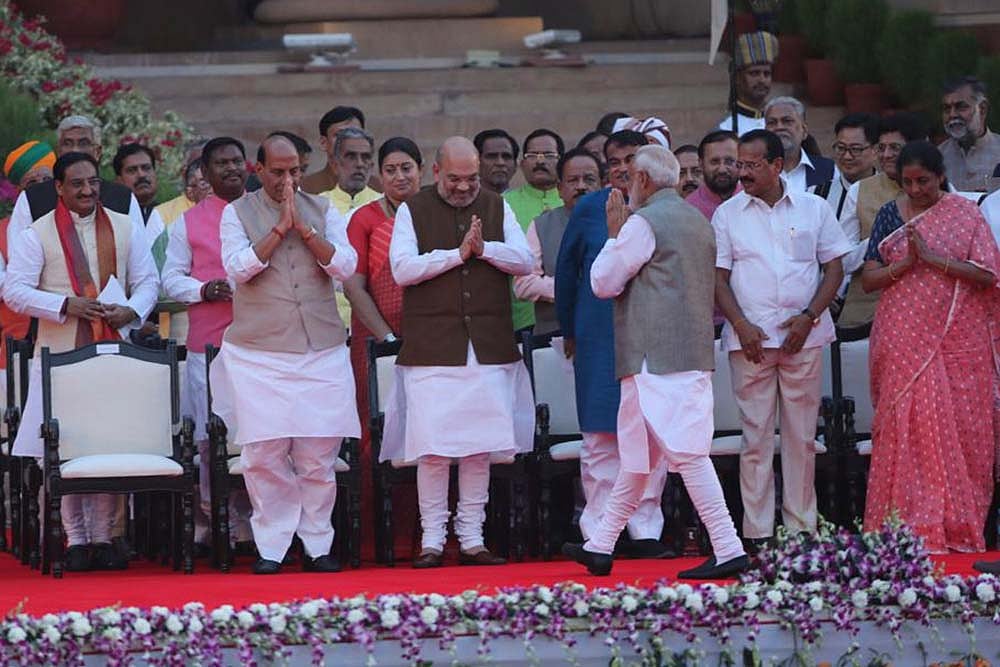 Prime Minister Narendra Modi was on Thursday administered the oath of office and secrecy, followed by 57 leaders from the National Democratic Alliance (NDA) who were also sworn in as cabinet ministers and ministers of state for the union.