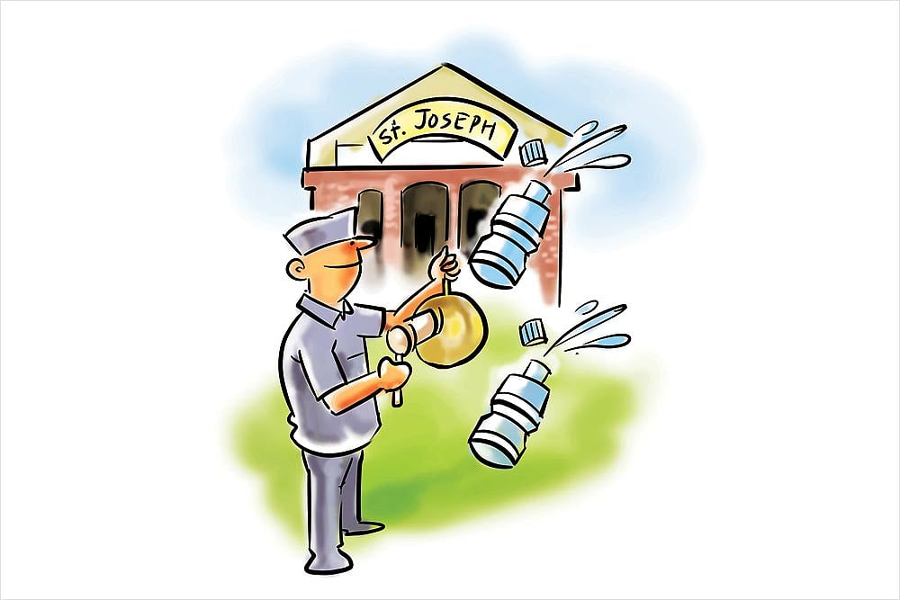 When the bells toll at St Joseph’s upper primary school in Thrissur district, it’s not just to mark the end of classes. At 11:45 am and 2:45 pm, ‘water bells’ ring and children take out their bottles or line up at the water cooler to swig the vital fluid. And no, they don’t have a choice—hydration is compulsory. In case you’re wondering how this injunction came about, the principal explains, “We have noticed girls don’t drink enough water to avoid going to the toilet. Students have reported health problems such as urinary infections.” Perhaps ‘toilet-cleaning bells’ would have been more useful than forcing water down kids’ throats.