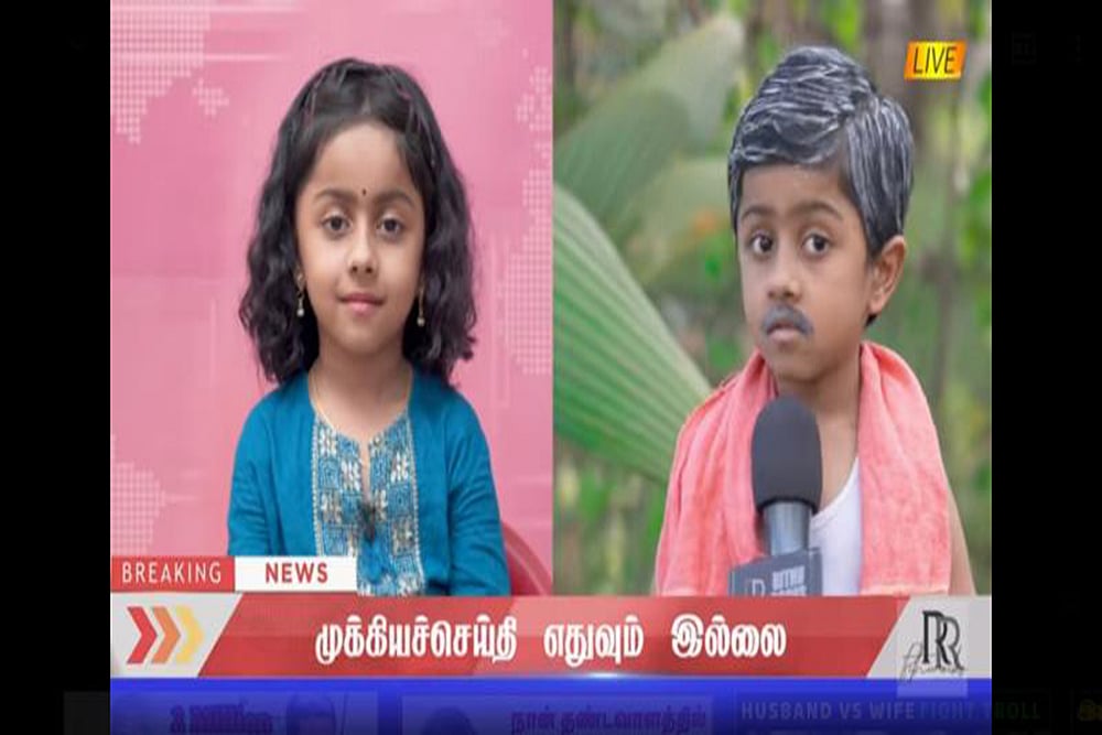 The latest breaking news in Tamil Nadu is happening on a YouTube channel called RithuRocks in which seven-year-old Rithvik (Rithu) does a hilarious spoof of Tamil news channels.