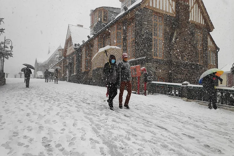 The tourists already lodged in Shimla in hope for the snow were lucky to watch nature's charm as many rushed to the Ridge, Shimla’s iconic ground and Mall road to celebrate this year's first snowfall.