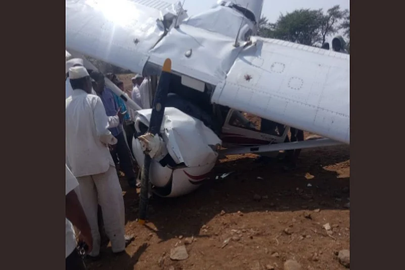 The aircraft belonged to the Carver Aviation Private Limited based in Baramati in the district, a police official said.