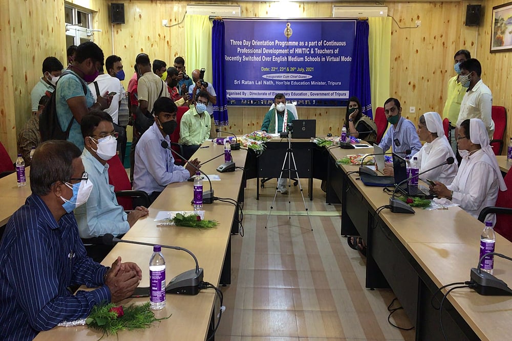 The Tripura government in its drive towards improving the education quality and ability of student’s competency at the national level examination has taken various initiatives including adopting NCERT textbooks, CBSE curriculum, and affiliation besides gradually converting Bengali medium schools to English medium on demand.