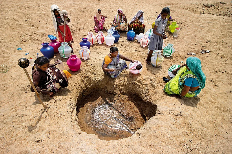 The Telangana capital has enough drinking water, but it is worried about the receding groundwater level, especially this summer. Delayed monsoons created a minor panic in May, which hasn’t abated yet. “The demand, which peaked in May, has not come down even in July,” admits an official of the Hyderabad Metropolitan Water Supply and Sewage Board. The estimated demand per household is 150 litres per day in the core area of Hyderabad, and 100 litres in the peripheral regions. According to the water board’s director, M. Dana Kishore, there was no need to panic. The Greater Hyderabad Municipal Corporation, which covers the three cities of Hyderabad, Secunderabad and Cyberabad, needs 420 million gallons a day, which can be largely catered to by Kaleswaram via Yellampally (a perennial source of 172 million gallons a day) and Krishna river (270 million gallons a day). Kishore claims that Nagarjunasagar’s dead-end storage can supply 270 million gallons for more than a year. Experts, however, contend that Hyderabad needs to reduce its dependence on faraway sources like the Krishna and Godavari rivers, and augment supplies from the nearby reservoirs of Malanna Sagar and Konda Panchamma.